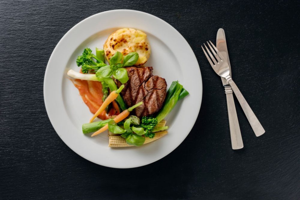 200 گرم گوشت بره گریل شده با یک سالاد محتوی سبزیجات و آب لیمو